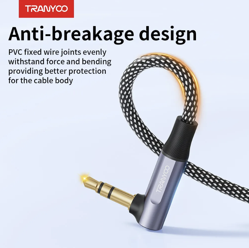 The Tranyoo 3.5mm to 3.5mm Audio Cable T-E4 delivers reliable and high-quality audio connection for all your devices. Whether you're connecting your smartphone to car stereo, headphones to a laptop, or audio player to speakers, this cable ensures clear stereo sound with minimal interference.
